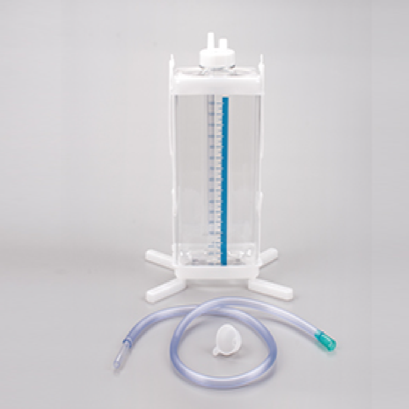 一次性使用胸腔引流瓶中单腔引流瓶由瓶体(积液腔)、瓶盖、连接管、两通、漏斗及悬挂装置等组成