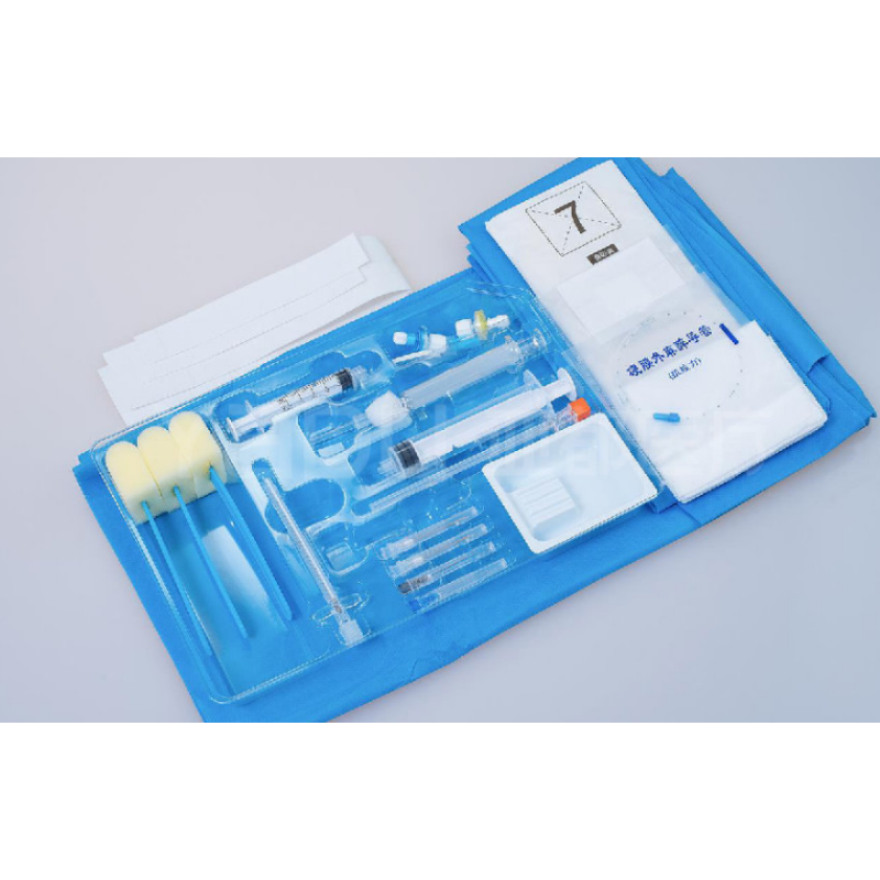 一次性使用麻醉穿刺包选用配置由空气过滤器、药液过滤器、一次性使用无菌注射器、一次性使用无菌注射针、一次性使用灭菌橡胶外科手套、全玻璃注射器、负压管、消毒液刷、纱布、敷料巾、治疗巾、医用胶带、导管固定垫、创可贴组成。